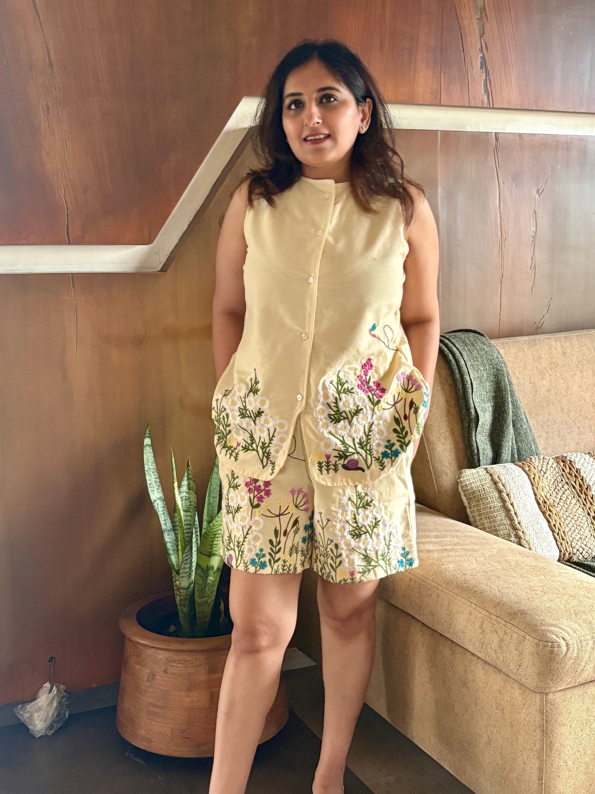 FLORAL EMBROIDERED SHIRT-SHORTS SETS